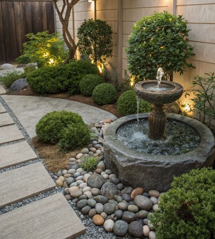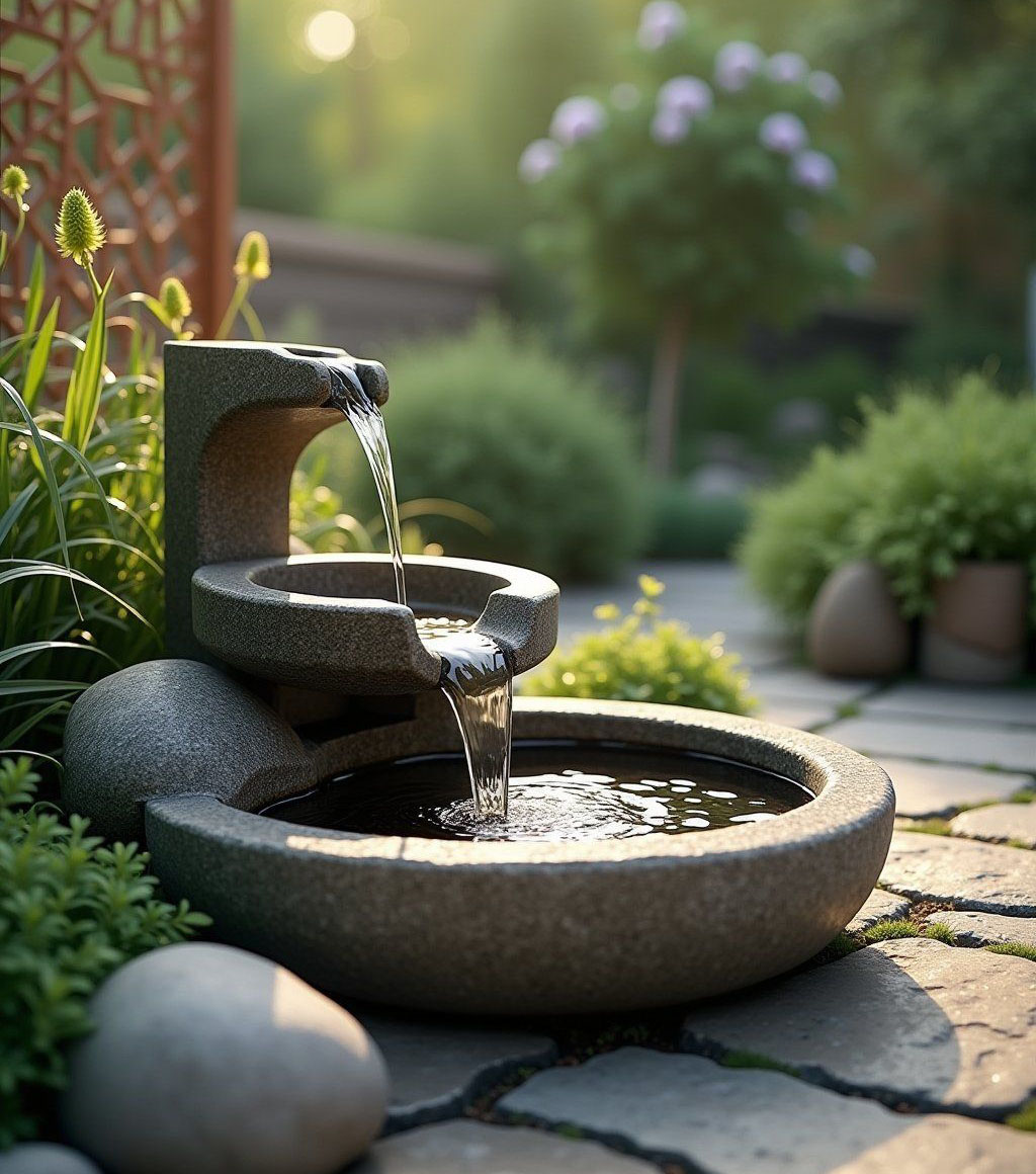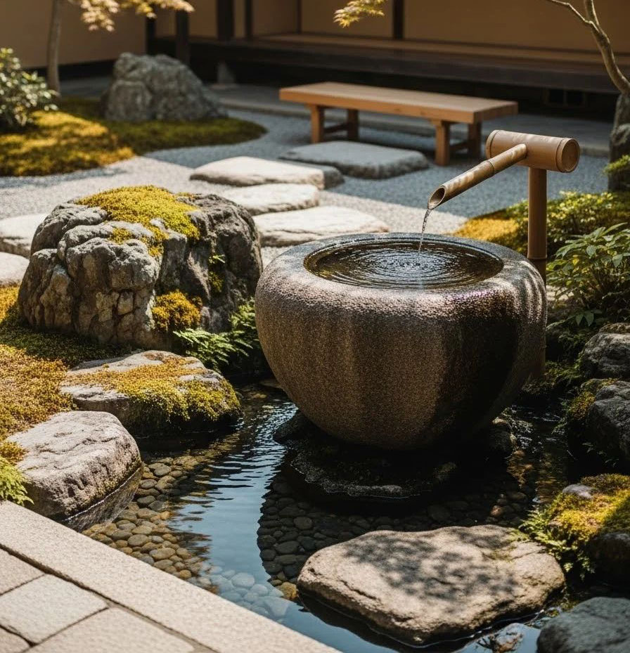 Tiểu Cảnh Nước Ống Tre Và Lu Sỏi Nhật Bản