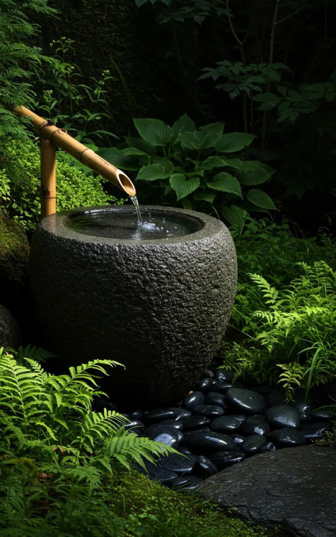 Tiểu Cảnh Nước Ống Tre Và Lu Đá Nhật Bản